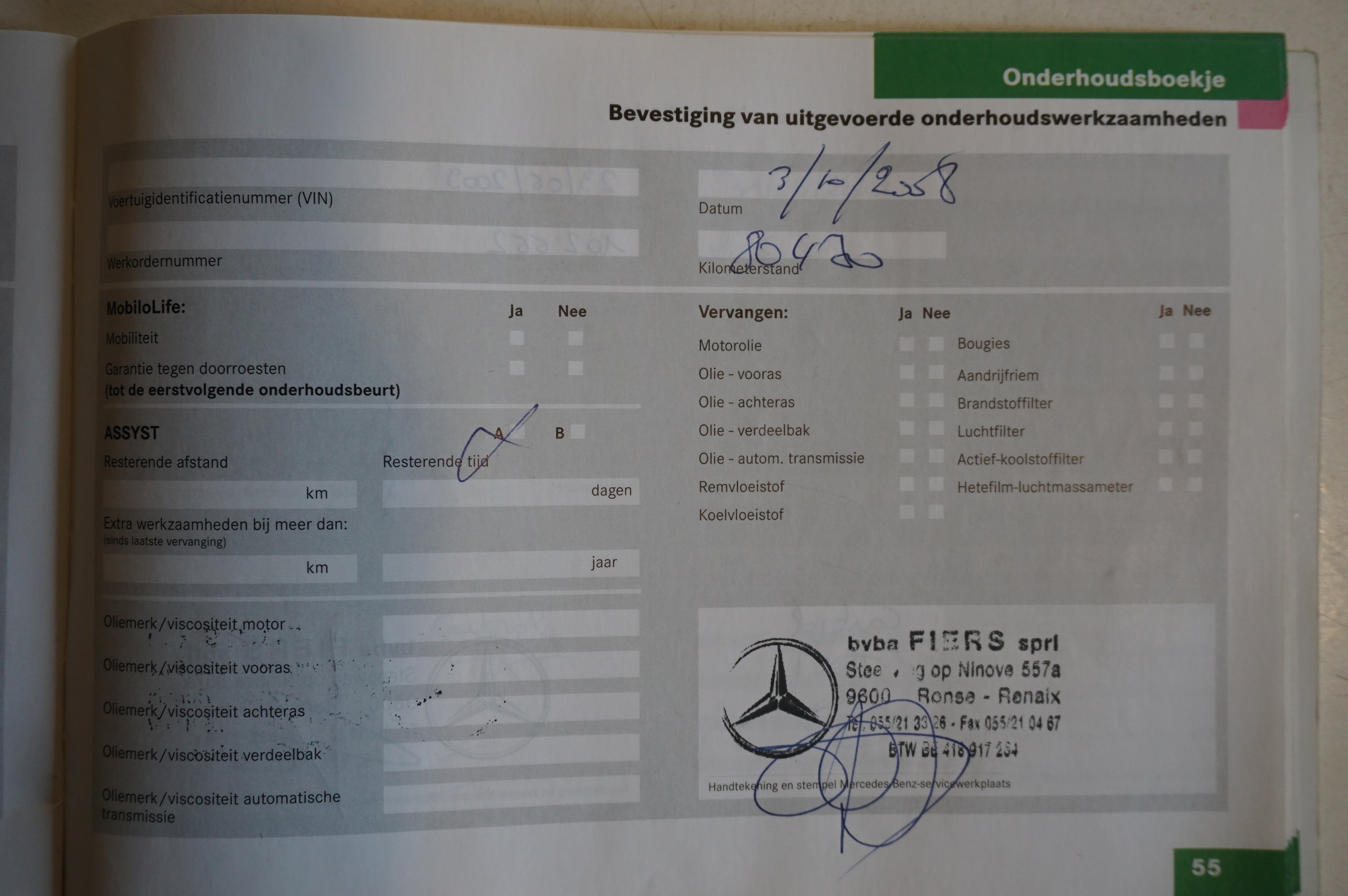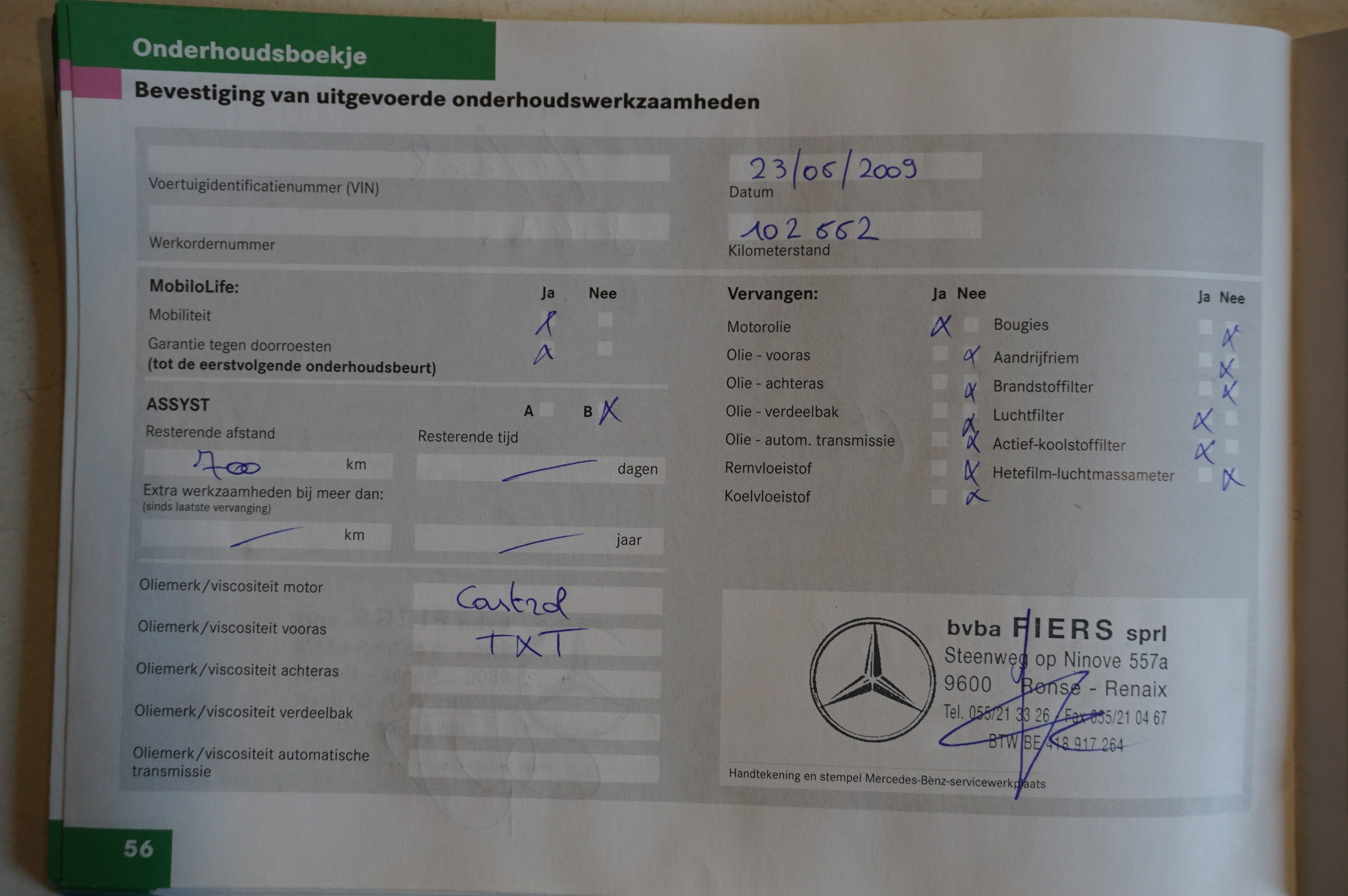 | Carnet d'entretien: | Oui, complet | | Carte d'immatriculation: | V |