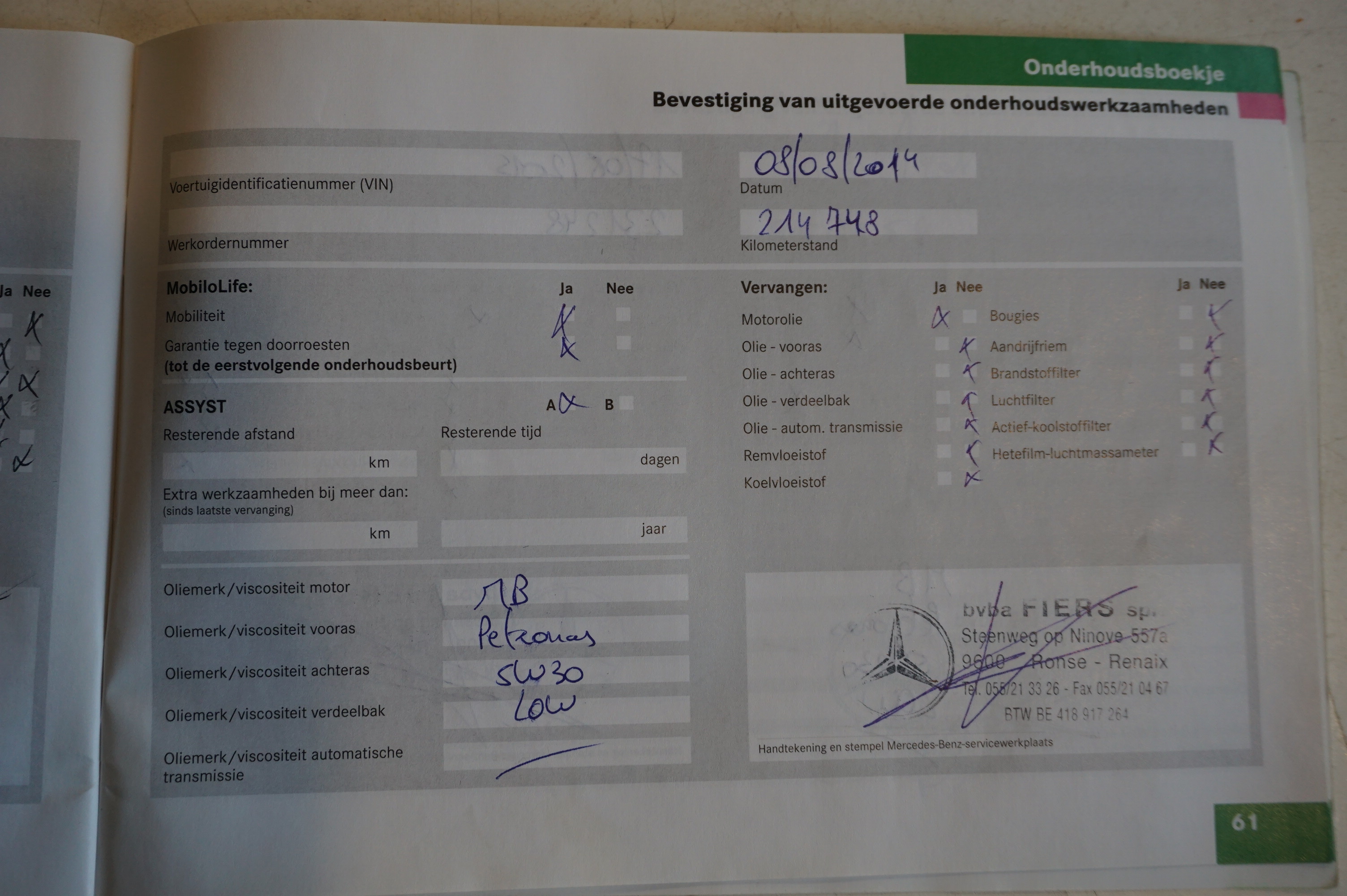 | Test émission CO2: | Dernier test encore valable |